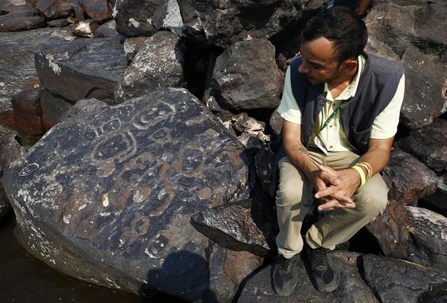 MANAUS (AP) — The Negro River, the major tributary that runs through the Brazilian Amazon, has reached historic lows, revealing millennia-old carvings previously hidden under water.