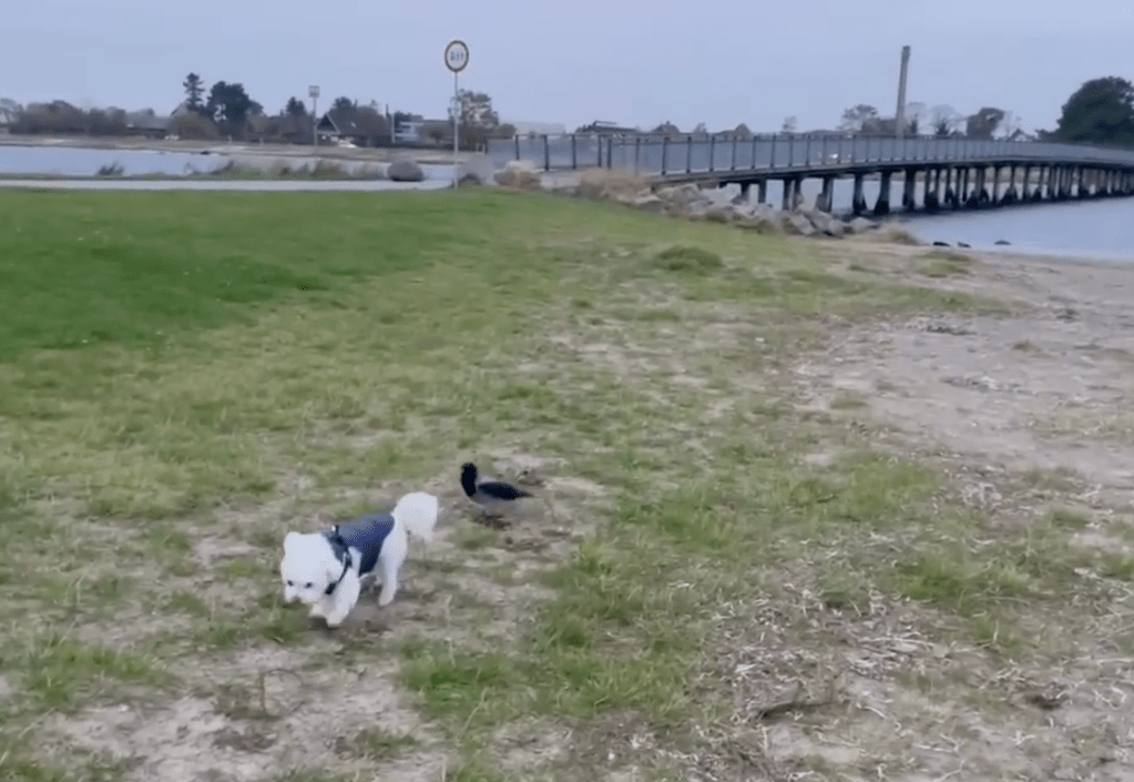 A crow randomly started teasing my dog on a walk. My dog was probably not as amused as the crow was