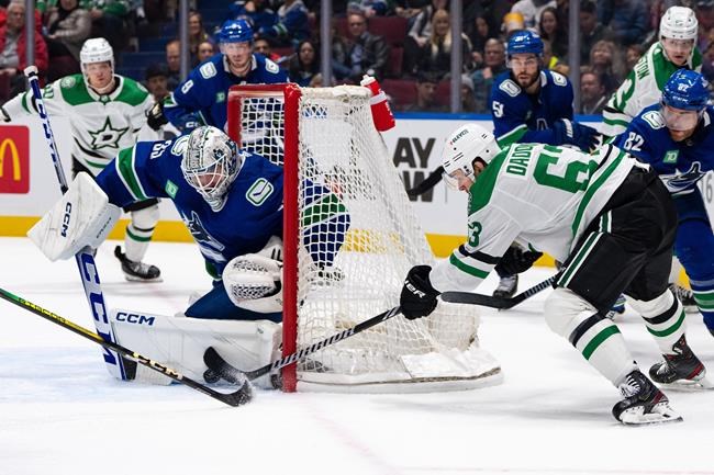 VANCOUVER – After his second shutout of the young NHL season, Thatcher Demko shone the spotlight on his teammates after the Vancouver Canucks took down the Dallas Stars 2-0 on Saturday night at Rogers Arena.