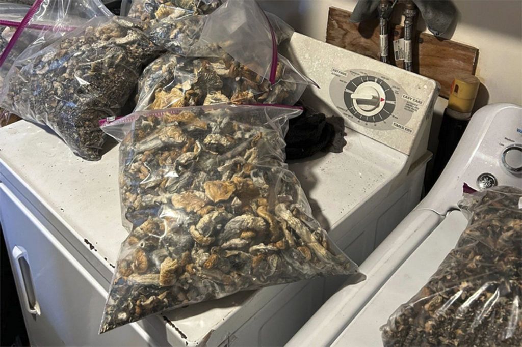 Authorities then got a search warrant and found what they called psilocybin-containing mushrooms in various stages of growth.