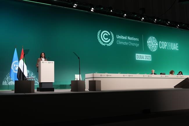 In Dubai, Harris said it was “our duty and our obligation” to do more to move the world away from fossil fuels and limit the increase in average global temperatures. She said the U.S. would contribute $3 billion to a global fund meant to help developing countries better confront climate change and was joining 90-plus nations in promising to double energy efficiency and triple renewable energy capacity by 2030.