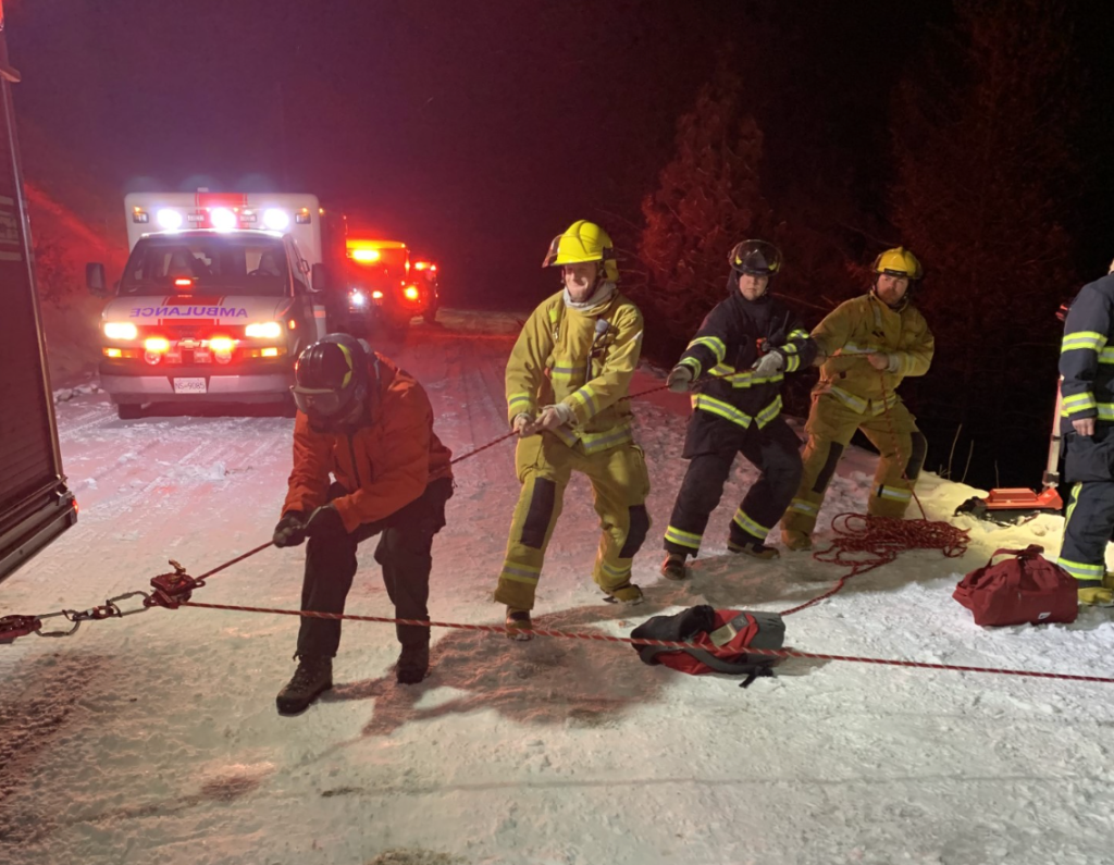 West Kelowna Fire Rescue hoisted a man up a treacherous slope after his vehicle went off the side of Bear Lake Main Forest Service Road.