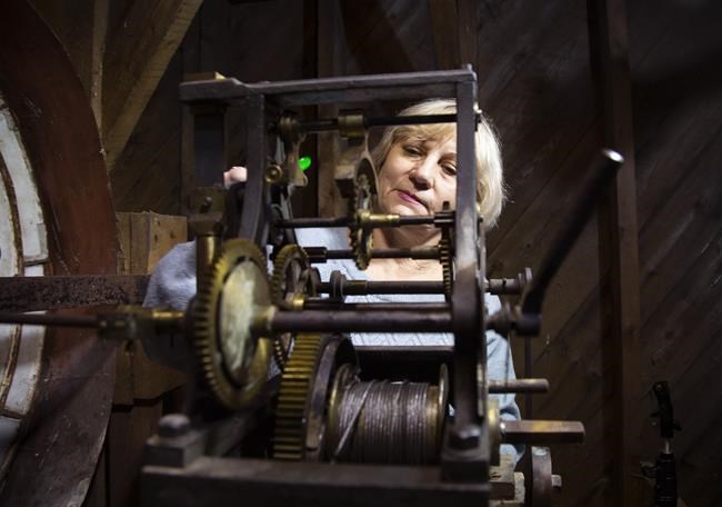 Liudmyla Pass, 68, had been in Newfoundland less than a month when she climbed the stairs to the long-silent clock tower in the coastal town of Carbonear on Tuesday, armed with her tools and five decades of expertise.