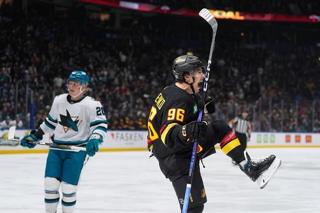His first came after seizing a puck redirected by the skates of San Jose’s Mikael Granlund and firing home a wrist shot. His second came after tipping a long shot from J.T. Miller on the power play to double Vancouver’s (23-9-3) lead.