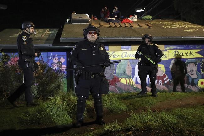 BERKELEY, Calif. (AP) — Police officers in riot gear removed activists from Berkeley’s People’s Park and crews began placing double-stacked shipping containers to wall off the historic park overnight Thursday as the University of California, Berkeley, waits for a court ruling it hopes will allow it to build much-needed student housing.