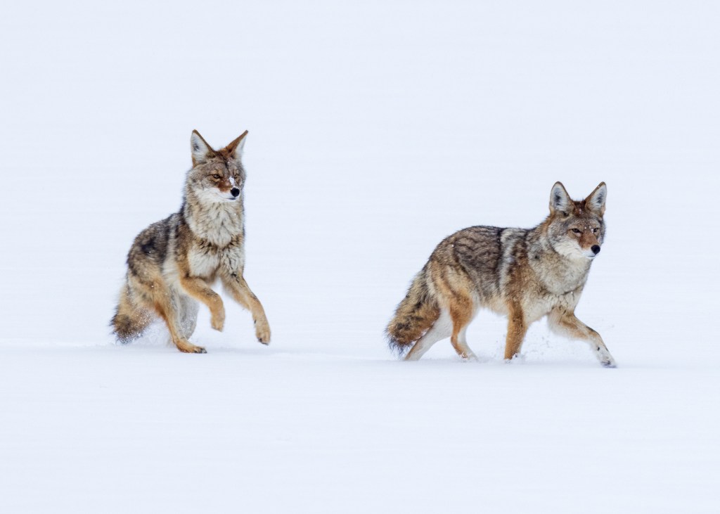 He said the coyotes heard his camera shutter going off and looked up at him briefly before running away.