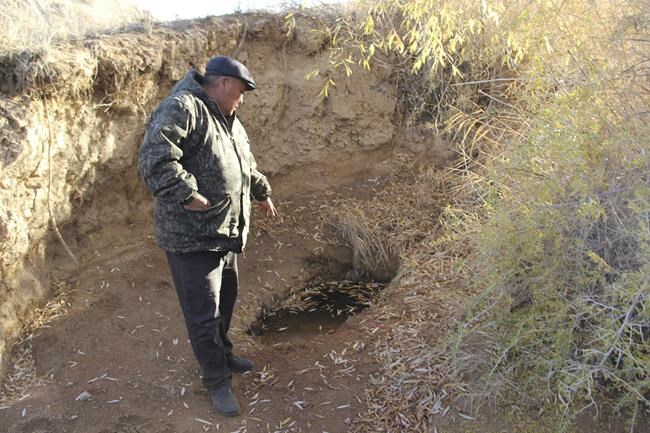 BOKONBAYEVO, Kyrgyzstan (RNS) — On a crisp afternoon in November, Bakyt Choitonbaev picked his way along a narrow trail, pushing through spiky shrubs of ephedra before stopping at a small pool of bright green water and pointing out well-worn patches of dirt where visitors kneel to pray.