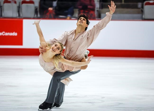 Toronto’s Piper Gilles and Paul Poirier of Unionville, Ont.,are in first place in ice dance after scoring 85.49 points in the rhythm dance.