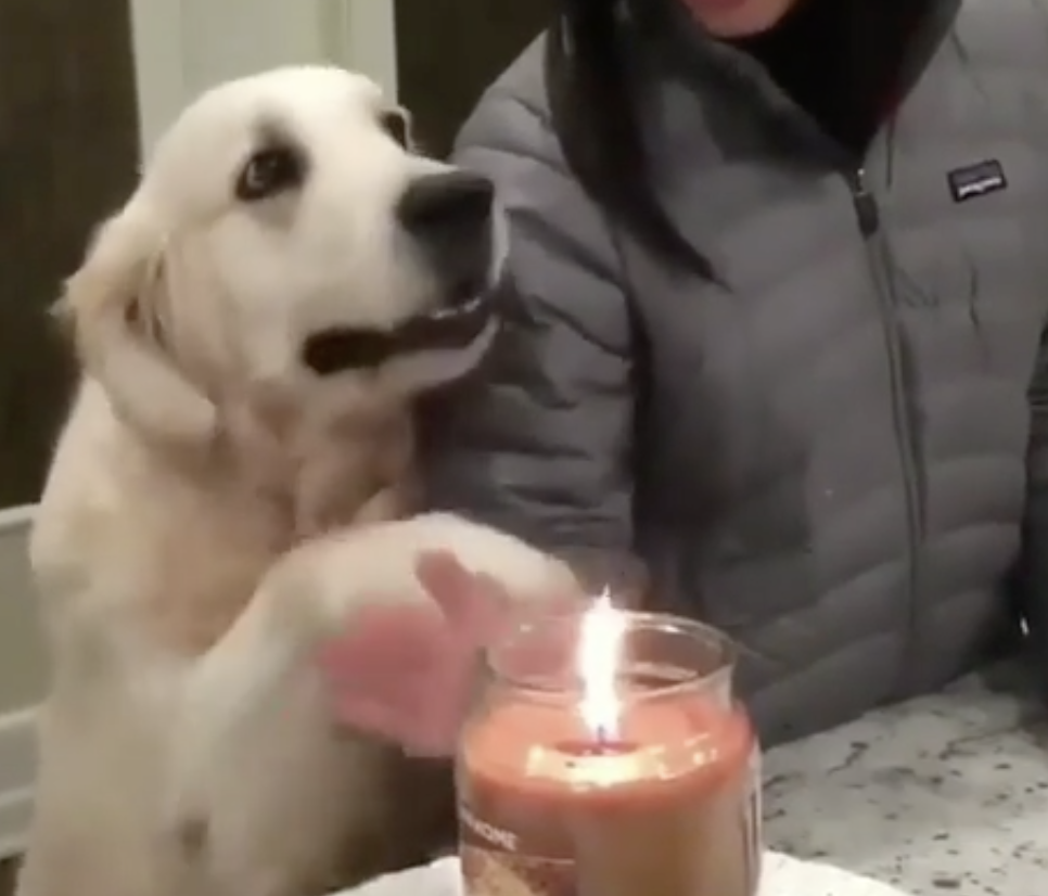 Scented candles are no joke, and this dog is fine treating its owner like a child if it keeps them safe.