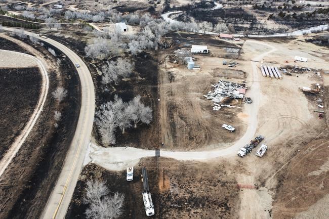 Gray skies loomed over huge scars of blackened earth in a rural area dotted with scrub brush, ranchland, rocky canyons and oil rigs. In Stinnett, a town of about 1,600, someone propped up an American flag outside a destroyed home.
