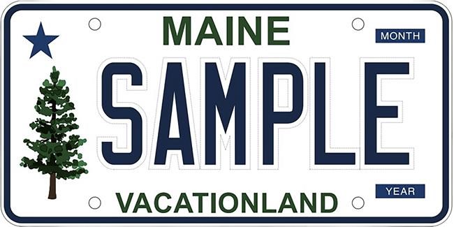 The plate features a tall green pine — the state tree — and the North Star, icons featured on the state’s first official flag in 1901. Maine residents will vote in November on whether to adopt a similar design for a new state flag.