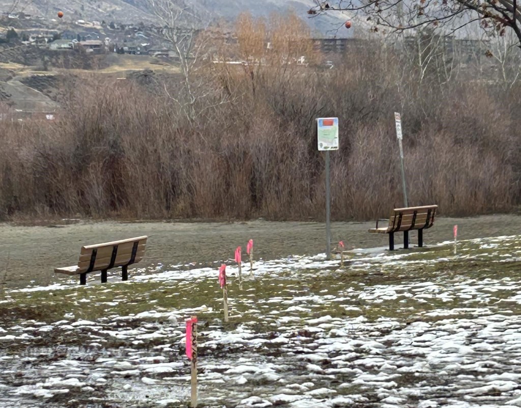Kamloops residents might have noticed a line of flagged wooden stakes going through one of three busy parks on the waterfront.