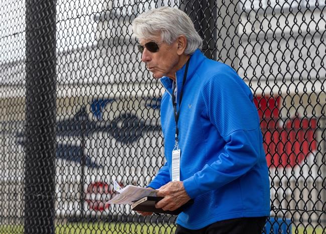 With trusty black notebook and pen in hand, Buck Martinez covers a wide expanse at the Toronto Blue Jays’ player development complex during spring training in Dunedin, Fla.