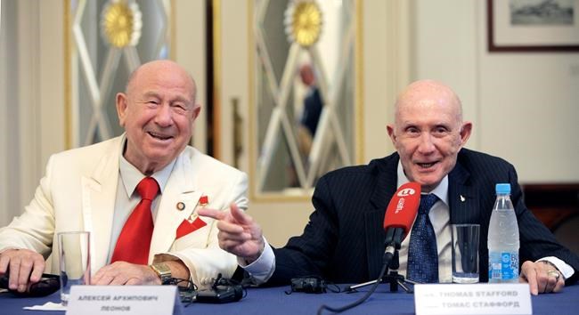 “We have capture,” Stafford radioed in Russian as the Apollo and Soyuz spacecraft hooked up. His Russian counterpart, Alexei Leonov, responded in English: “Well done, Tom, it was a good show. I vote for you.”