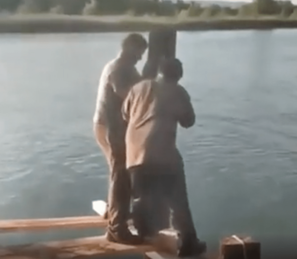 The joyous cackle while the two workers pull themselves out of the water tells you everything you need to know about this work site.