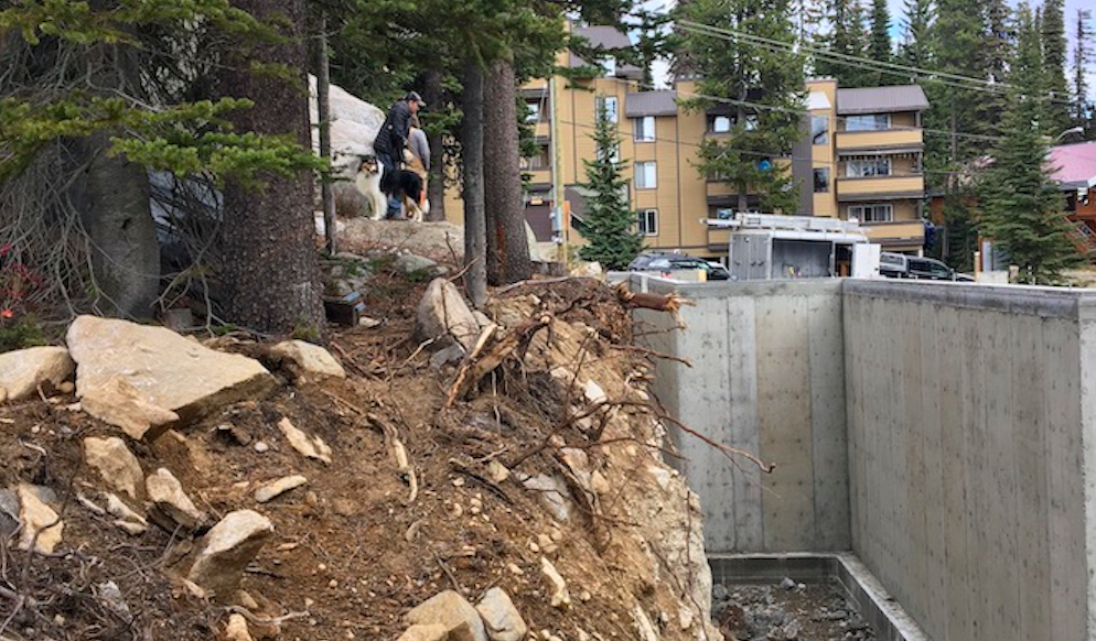 Blair has had a number of conflicts with the builder and its crews since excavation started last summer, such as concrete footings for bracing installed on his land, trees along the property line being removed and his cat cemetery being bulldozed. Although, he admits it may have been on his neighbour’s property.