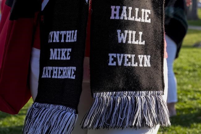 “It’s been a difficult week, and it’s been really hard and sad,” said Melissa Alexander, who has a 10-year-old at the private Christian elementary school. “But then we’ve had a chapel, and a private get-together, and then to see everybody linking arms out here really is like a bright spot. It gives me hope. And it fills my cup with happiness. I guess it’s the healing power of community.”