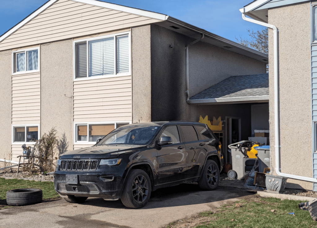 Neighbours reported seeing the men throw a gas can at the home, burning a portion of the front of the house and possibly damaging a Jeep in the driveway.