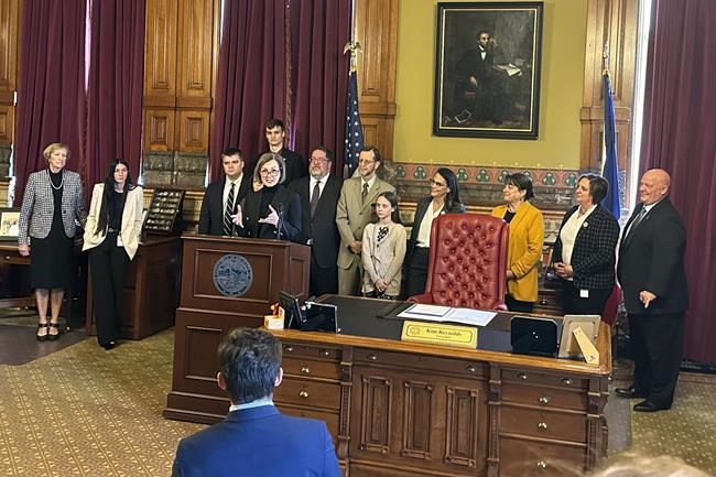 DES MOINES, Iowa (AP) — An explicit requirement that Iowa’s state, county and local decision-making bodies be balanced by gender was repealed Wednesday, a move that Gov. Kim Reynolds said was common sense but which critics warn may lead to fewer opportunities for women.