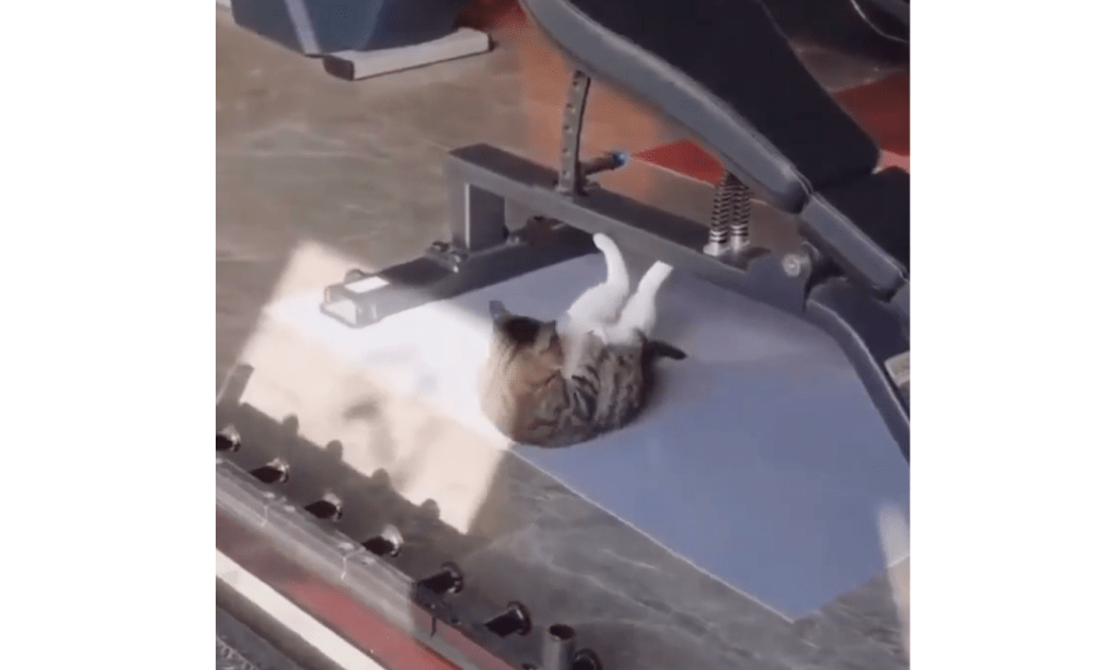 It could be the music that makes this clip of a kitten doing crunches at the gym extra adorable.