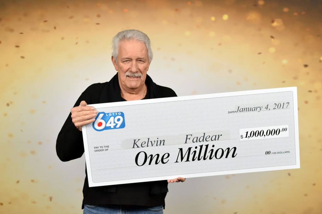 Retired Vancouver firefighter Kelvin Fadear, 76, has claimed a $1 million prize in the Dec. 24 Lotto 6/49 draw. He drove to Kamloops today, Jan. 4, to collect his cheque and spend a some time at the B.C. Lottery Corporation headquarters.