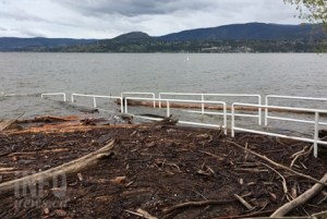 The Kiwanis Walking Pier was one of the worst hit structures on the Okanagan Lake shoreline. The pier, along with a section of the walkway on either side, has been closed.