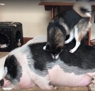 This is either about a terribly rude person, er, dog trying to disturb that poor pig who just wants to sleep in or it's about the lazy friend who just wouldn't get up and play.