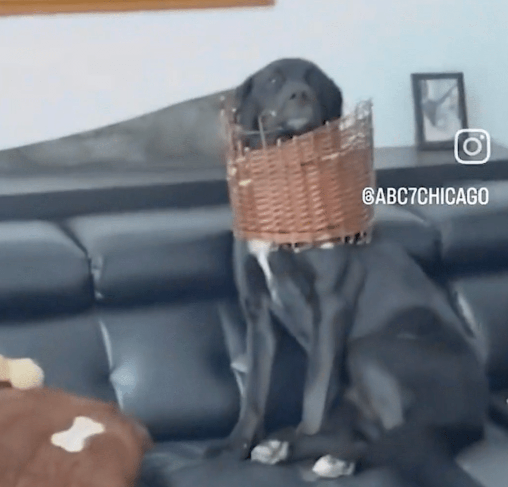 They arrived home to find their innocent looking doggo had destroyed a basket.