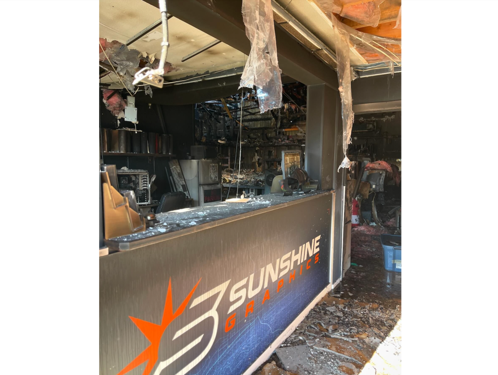 Emergency crews were called to a fire Sunshine Graphics at 4504 31 Street at approximately 5 a.m. today, Sept. 4, according to an RCMP media release.