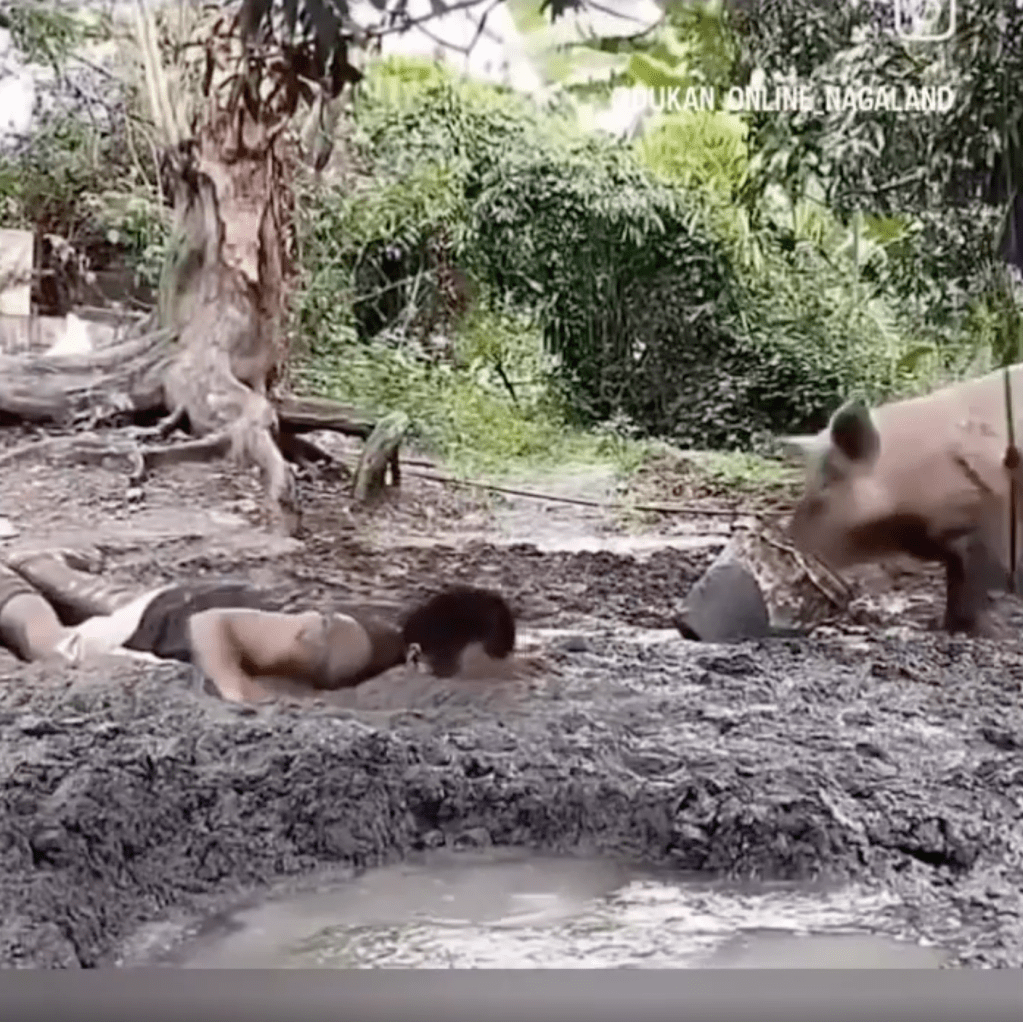 As these two decide to suspend their friend in air and tickle him until he gives up, he face plants into the squidgy mess.