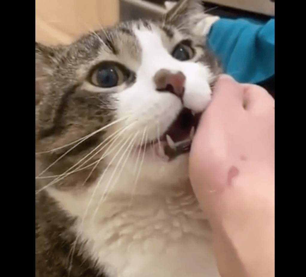 This kitty is practicing so much self control when given a prime biting opportunity.
