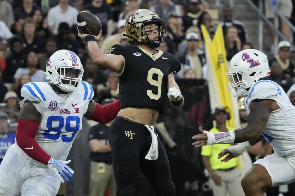 Louisiana-Lafayette is starting a stretch with four of five games on the road. … Wake Forest is 18-6 in nonconference play over the past six years, with that win percentage (.750) trailing only Duke (18-5, .782) in that time. … Wake Forest allowed 430 yards in a 31-30 loss to Virginia and 649 yards in a 40-6 loss to Ole Miss. … The Ragin’ Cajuns are 1-3 against current Atlantic Coast Conference schools, splitting games against Miami in 1929 and 1930 before falling to Pittsburgh in 1997 and Florida State in 2022. … Louisiana-Lafayette has been flagged for a national-low nine accepted penalties this season, two better than any other team. The Ragin’ Cajuns are third nationally for fewest penalty yards per game (20.0), behind only Wisconsin (17.7) and Kent State (18.0). … Wake Forest defensive end Jasheen Davis is fourth in program history with 21.0 sacks, with Duke Ejiofor (2014-17) next up on the list with 23.5. … Louisiana-Lafayette was picked to finish third in its Sun Belt Conference division, while Wake Forest was picked 15th out of 17 teams in the newly expanded ACC.