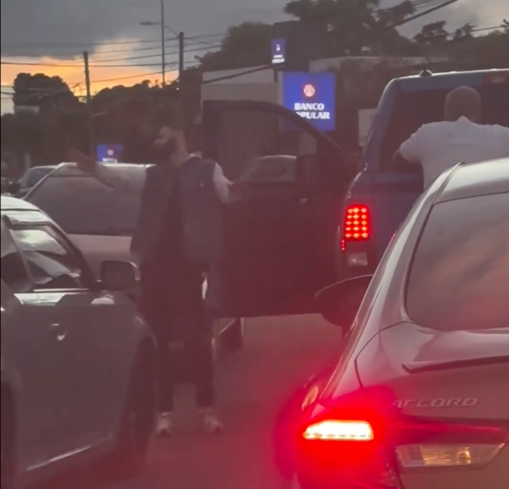A driver figured he'd entertain his fellow commuters while stuck in traffic.