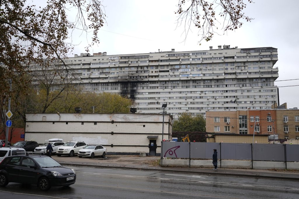 MOSCOW (AP) — Two people died in a fire at one of the Russian capital’s most notable buildings, a gargantuan Brutalist apartment block that viewers have likened to a toppled skyscraper, emergency officials said Thursday.