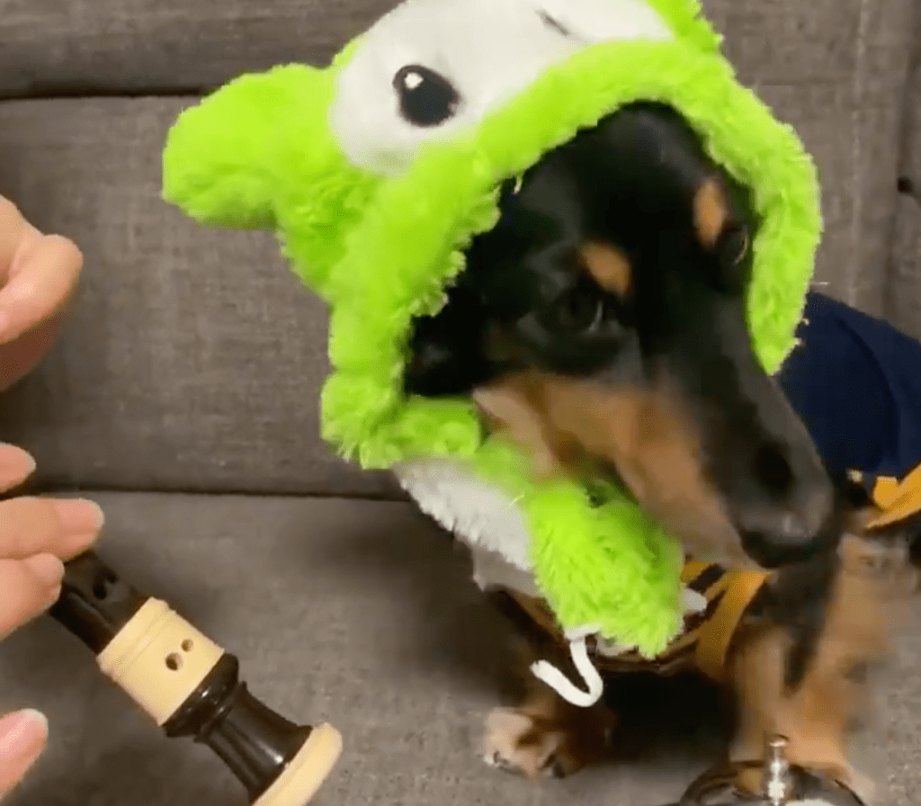 This musically "gifted" pooch is so good has pretty good timing.