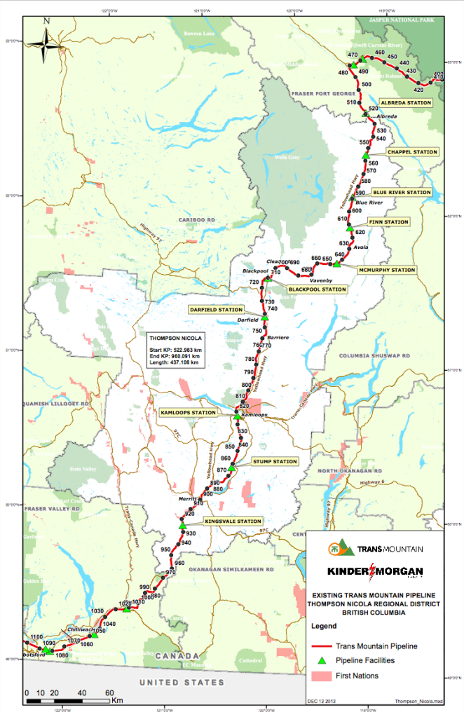 — The projected route of the Kinder Morgan pipeline runs through Kamloops and Merritt.