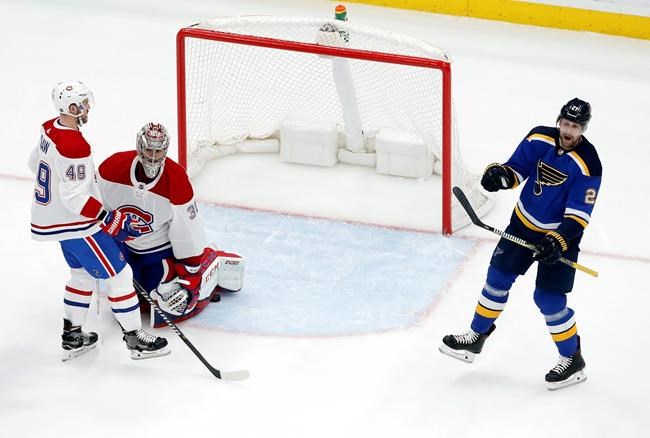NOTES: Montreal C Phillip Danault missed his seventh consecutive game with a concussion. … The Blues have earned at least one point in eight of their last 10 games against Montreal. … Canadiens D Joe Morrow returned to the lineup in place of Jordie Benn. Morrow had been a healthy scratch in the previous seven games. … The Canadiens recorded the first nine shots of the game.