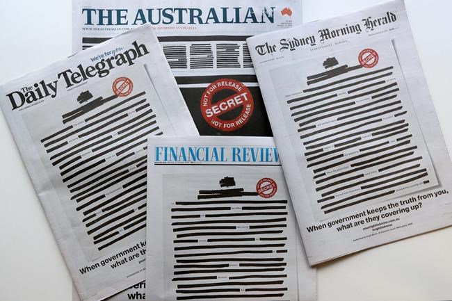 CANBERRA, Australia – Australia’s major newspapers published redacted front pages on Monday in a co-ordinated campaign to highlight government secrecy that is often justified on national security grounds.