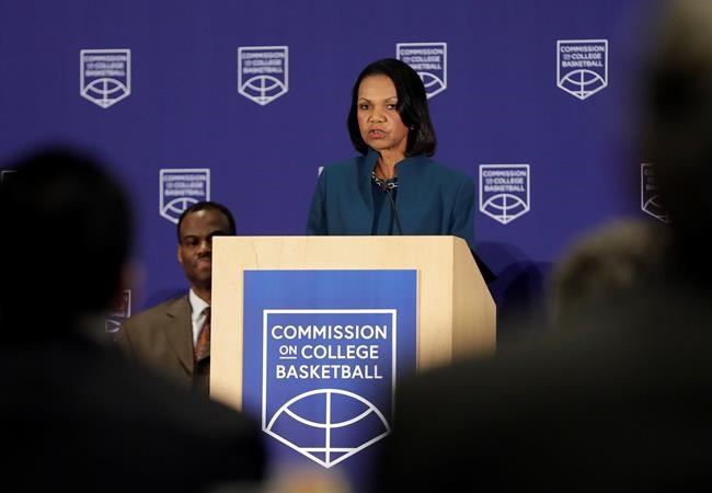 Rice, the chairwoman of the commission, presented a 60-page report to NCAA leaders Wednesday that recommended sweeping changes for college basketball — from NBA draft rules to youth basketball to NCAA rules enforcement.