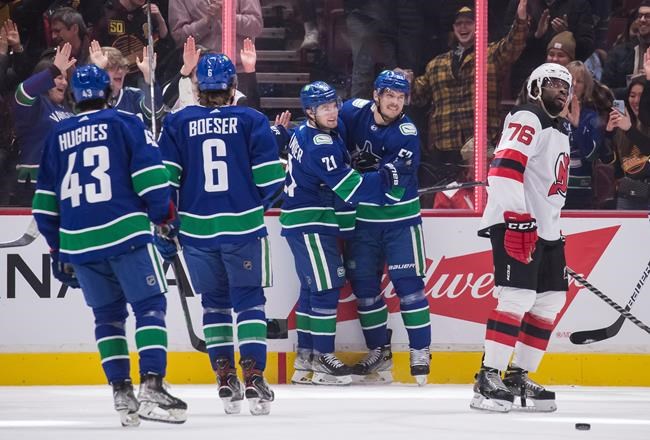NOTES: The Devils were 0 for 3 on the man advantage. The Canucks went scoreless on their lone power play. … New Jersey centre Pavel Zacha went hard into the boards early in the first period and stayed on the ice for several moments before skating off with a trainer. He went directly to the Devils locker room and did not return to the game.