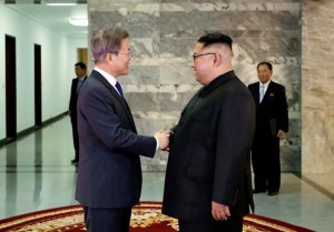 South Korea’s president, Moon Jae-in, gave details about his surprise meeting Saturday with Kim in the Panmunjom truce village, saying Kim had committed to sitting down with Trump and to a “complete denuclearization of the Korean Peninsula.”