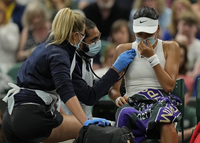 The 18-year-old Raducanu stopped playing while trailing in the second set of her fourth-round match against Ajla Tomljanovic on Monday night. Raducanu was visited by a trainer, then left the court for a medical timeout. Eventually, the chair umpire announced the 338th-ranked Raducanu would not continue because of a health issue, but did not specify why.
