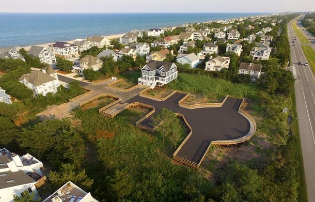 Meanwhile, to avoid having to obtain a federal permit from the Army Corps of Engineers to dredge or fill in the wetland, the developer of the Breakwater Beach project has built an elaborate elevated wooden cul-de-sac on pilings in anticipation of building the homes, also perched on pilings.