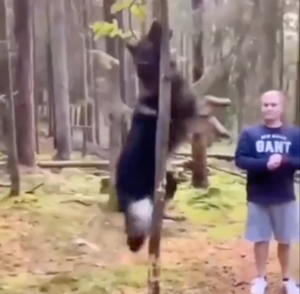 The best part is the loud crack as he snaps the tree in half.