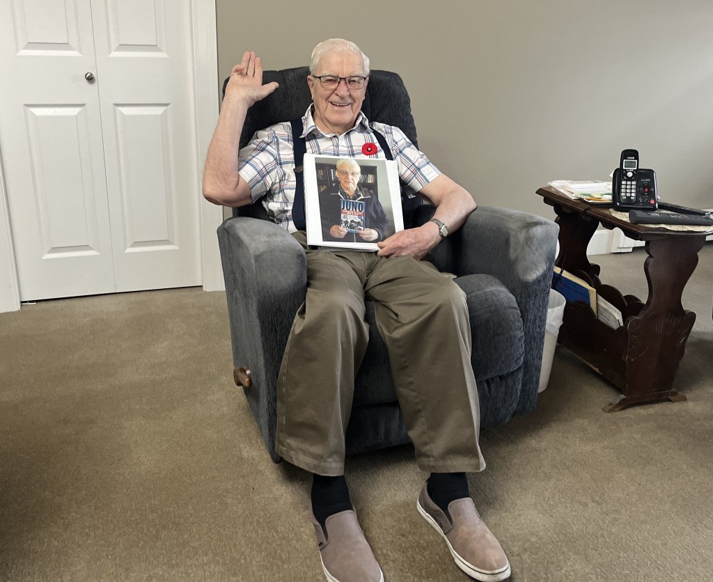 He remembers the Normandy invasion on Juno Beach on D-Day in 1944 when he arrived on a double decker ship.