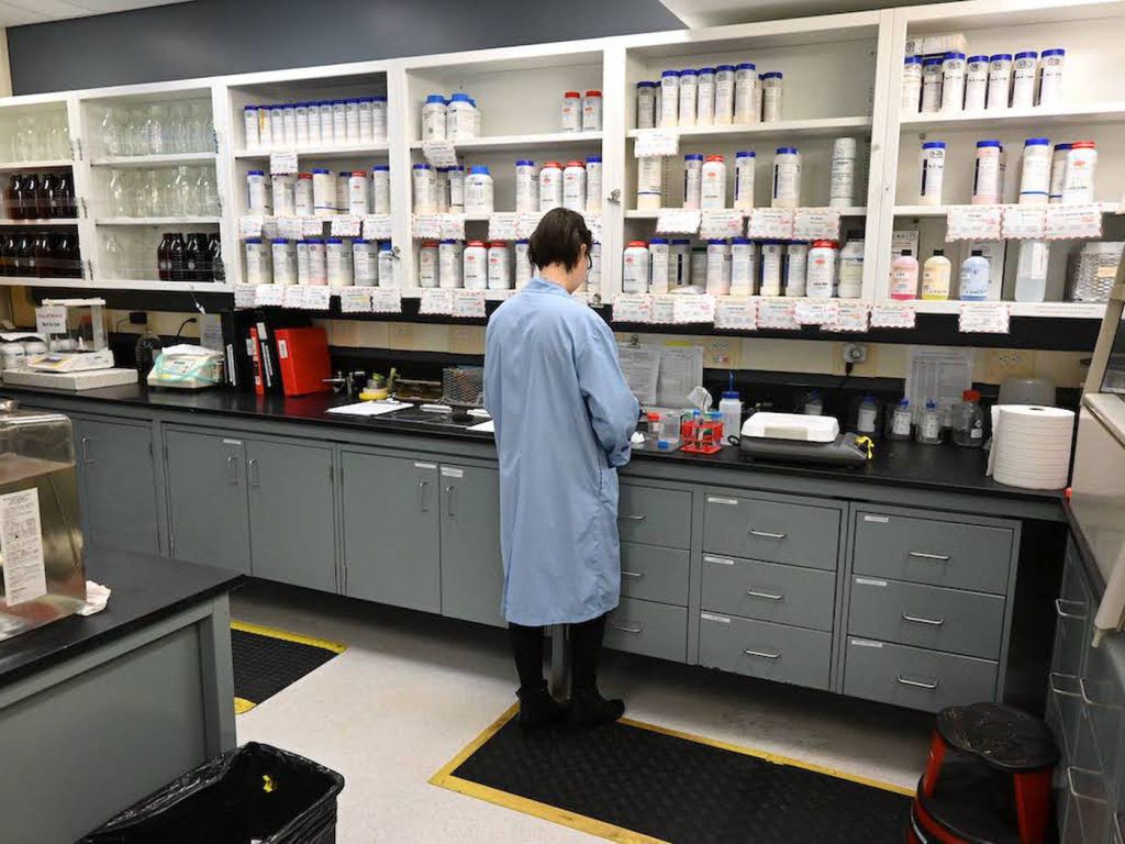 Bateman, pointing out several areas marked with biohazard or poison warnings, says everyone at the lab is certified to handle these hazardous materials and the lab is licensed to handle toxins and pathogens.