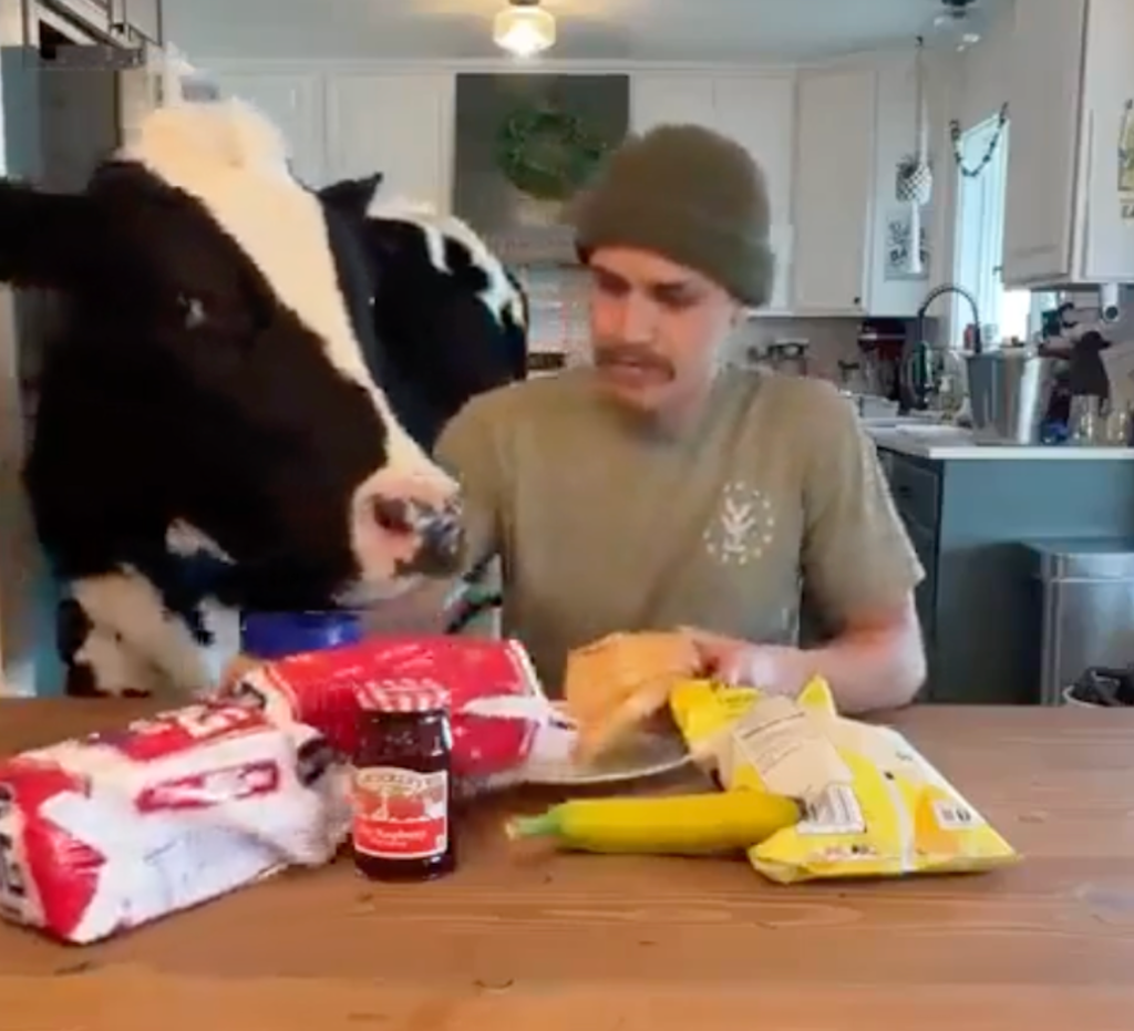 Some pets like to play, others like belly rubs, this cow wants nothing more than peanut butter.