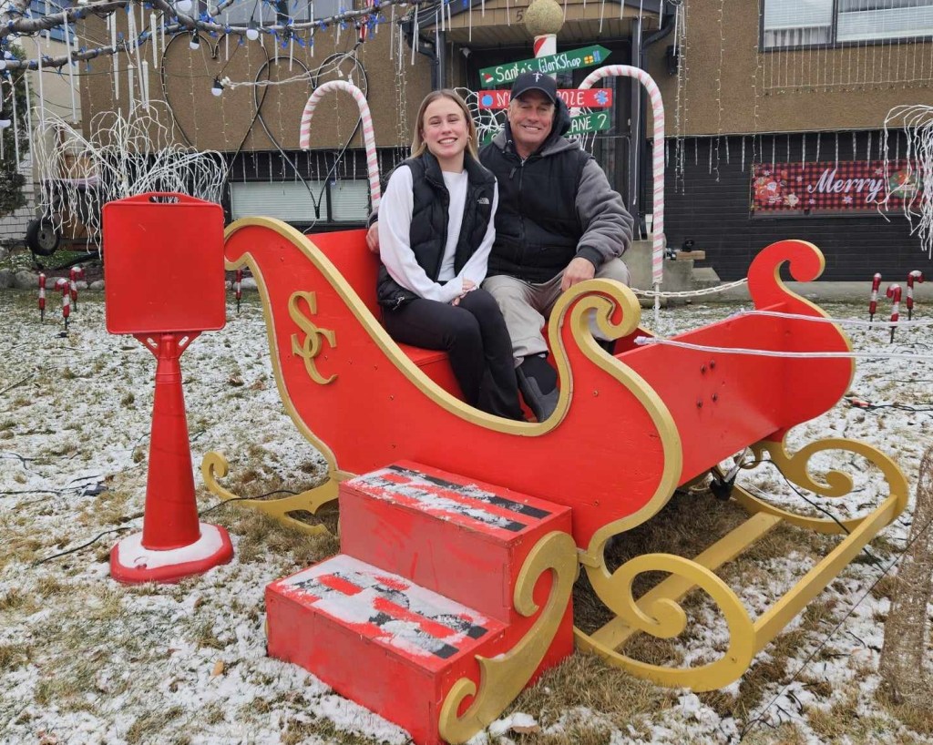 “A lot of stuff in our yard is homemade. I made the candy canes out of pool noodles and duct tape, and built and painted the sleigh. It’s kind of a big art project, my dad doesn’t sleep much during this time.”