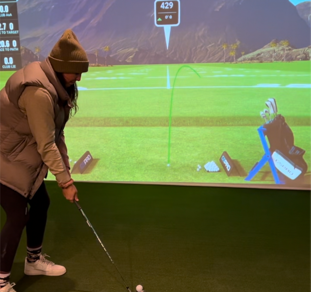 The golf simulator allows players see the angle they hit the ball using multiple cameras and provides statistics so they can improve their swing. The tech essentially determines where your ball will land and why.