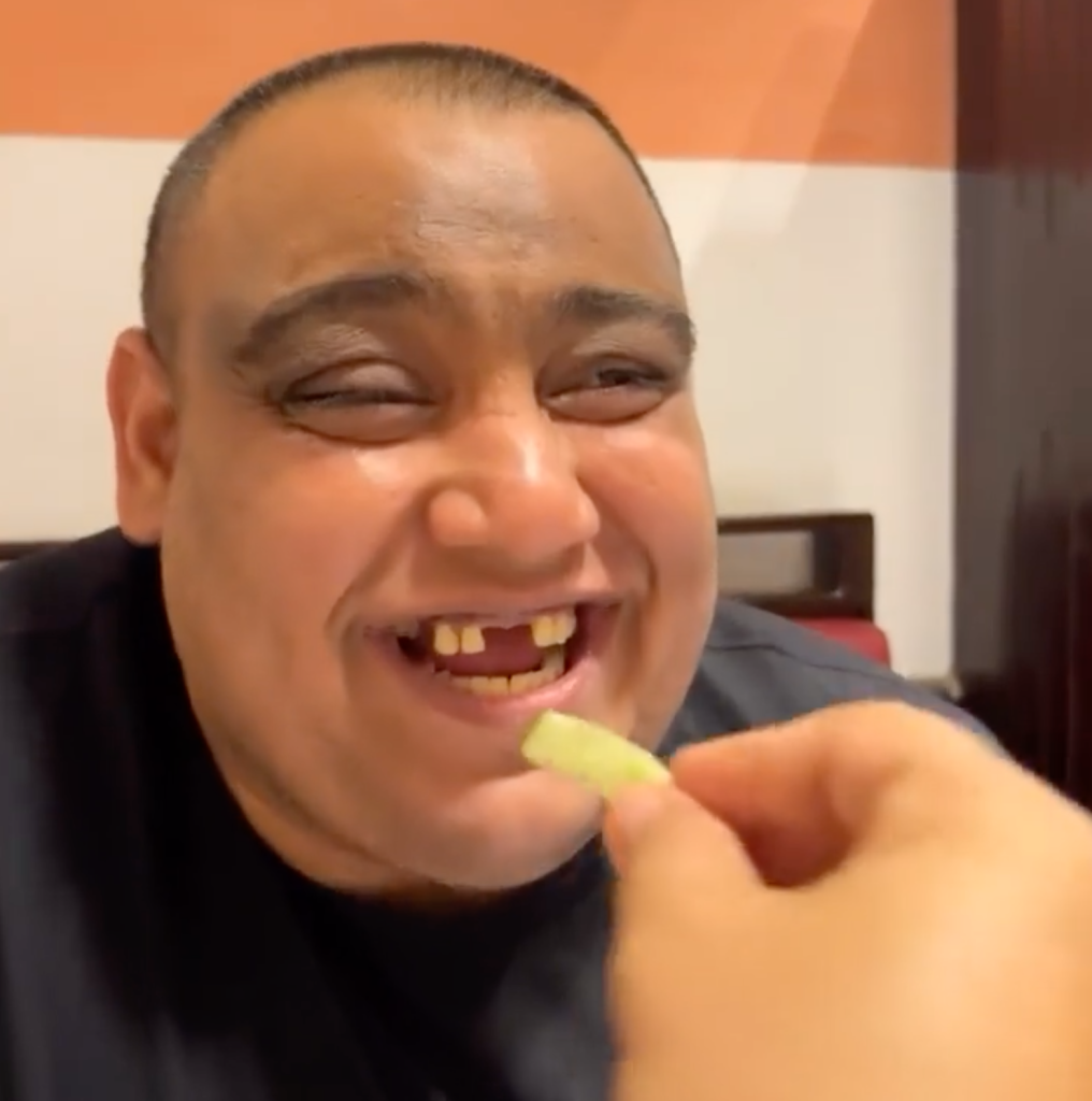 This man looks betrayed when denied a taste of the lemon due to his missing two front teeth.